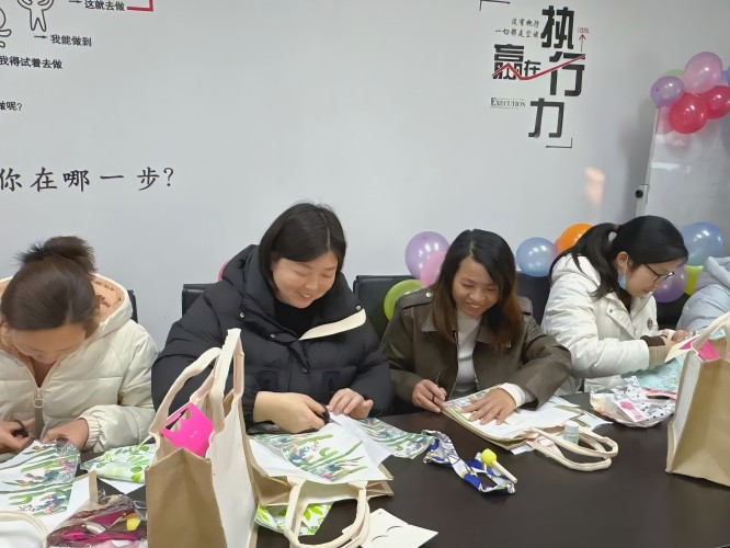 在DIY教學與制作環節,大家紛紛拿起畫筆和刺繡貼布,在帆布包上自由創作,將個人的創意與情感融入其中。每一件作品都獨一無二,不僅展現了我們的巧思與匠心,更成為了我們心中美好的記憶。